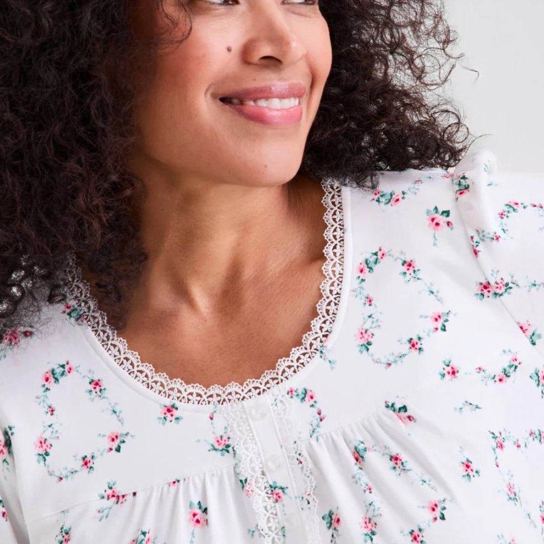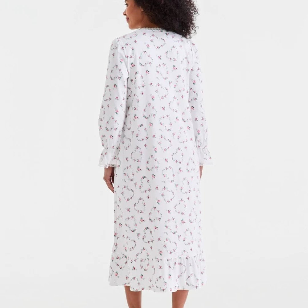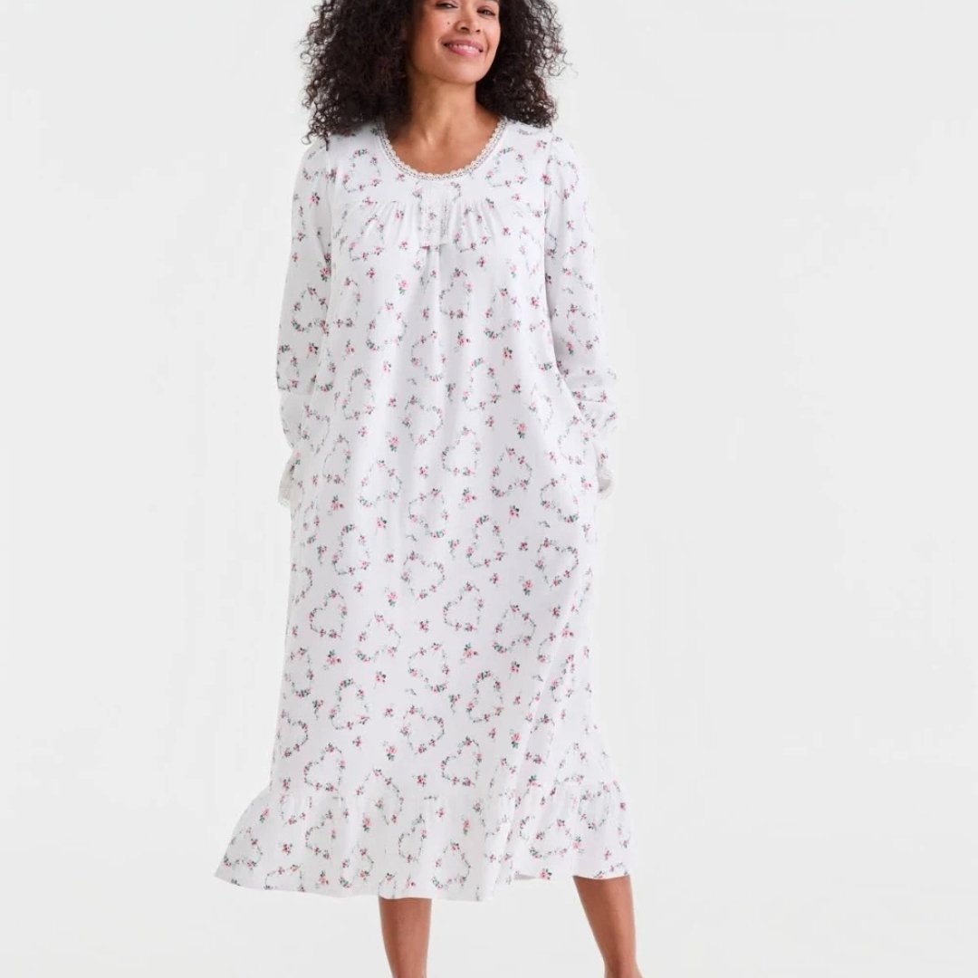 Home Nightwear Zealith White Floral Long-Sleeve Maxi Dress for Graceful Everyday Feminine Style Elegance